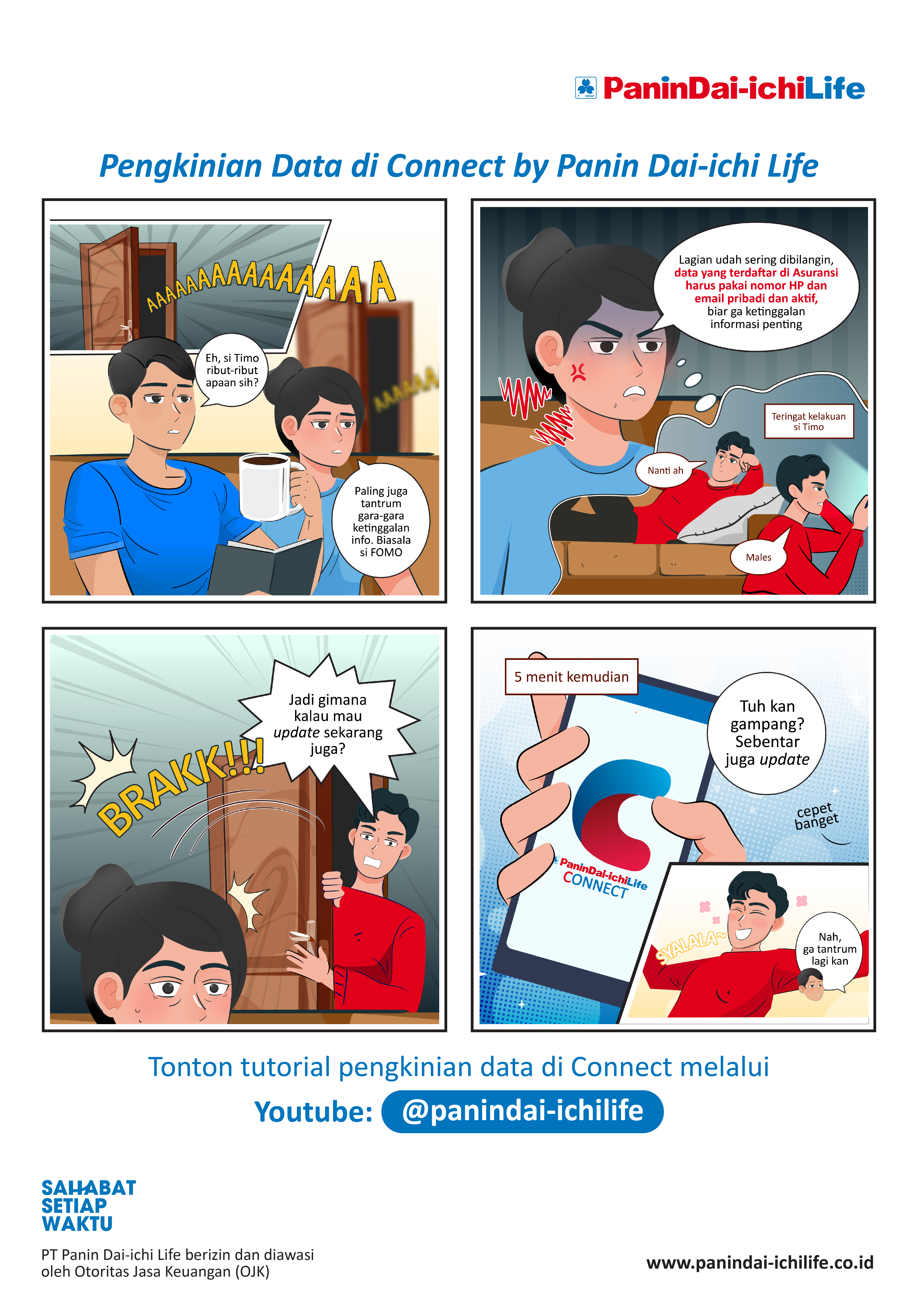 Biar makin praktis, kamu bisa langsung lakukan pengkinian data lewat aplikasi Connect by Panin Dai-ichi Life. Mau tau caranya? Disini ya..